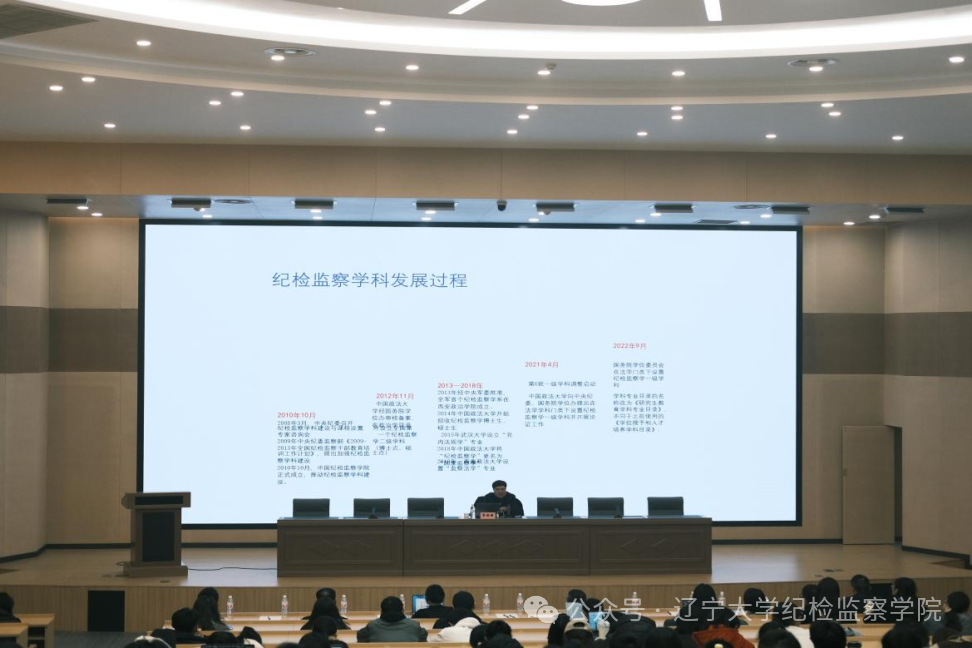 2025 年 11 月 24 日,辽宁大学纪检监察讲坛·中国特色反腐败研究专题讲座·心理测试与行为分析室学术讲座在纪检监察大楼 160 室成功举办。中国政法大学原党委副书记、原副校长、纪检监察学院院长常保国教授受邀作《纪检监察学科的学理资源与自主知识体系构建》专题报告。学院领导、教师代表及全体本科生、研究生参加活动,讲座由辽宁大学纪检监察学院院长王喜满主持。