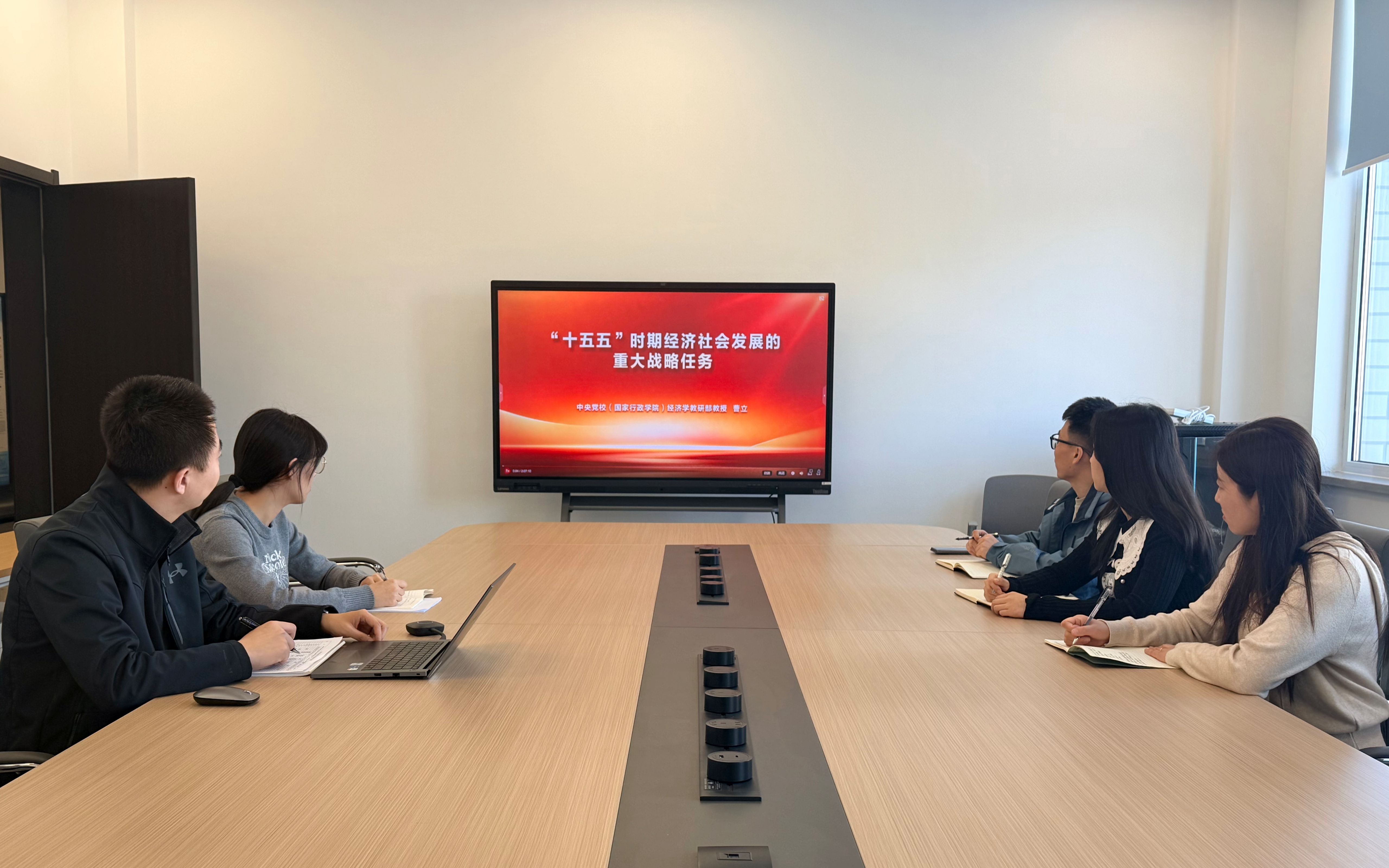 2026年3月18日,反腐败研究中心支部5名党员在纪检监察大楼412开展集中学习。本次学习以视频形式开展,重点学习“‘十五五’时期经济社会发展的指导思想、重大原则和根本保证”及“‘十五五’时期经济社会发展的重大战略任务”,深入领会“十五五”发展六大原则与四大战略任务核心要义。